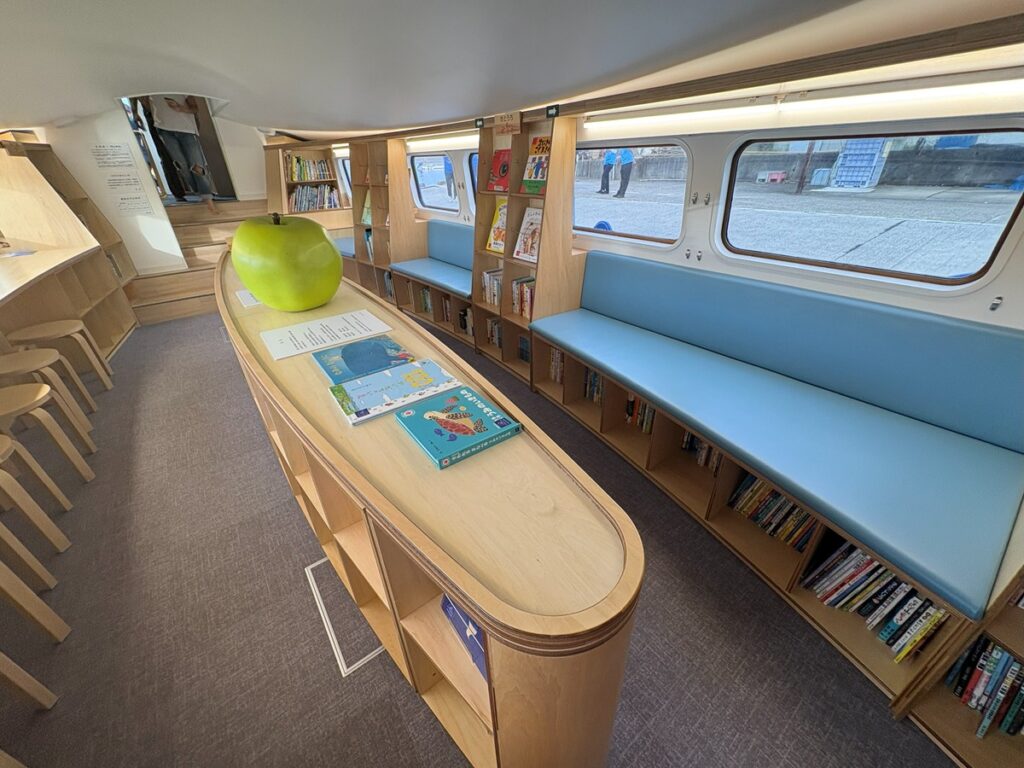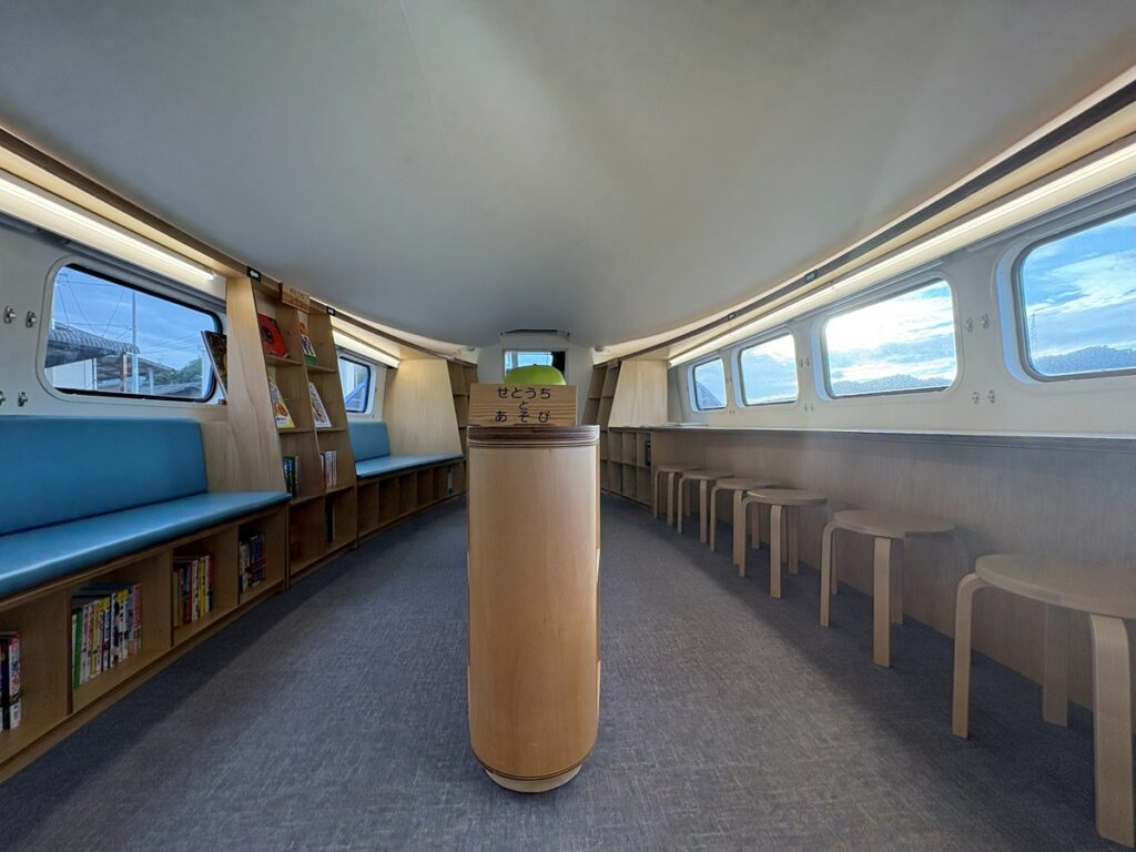 しかし、さまざまな支援者・協力者を得て、それは実現した。もとの船は全長約20mほどの高速船。安藤氏がそれを改修し、絵本や児童書、図鑑など、5つのテーマに沿って収集した約3000冊の本を積み込めるようにした。定員は12人だが、12歳未満の子どもなら20人ほどが乗船可能。