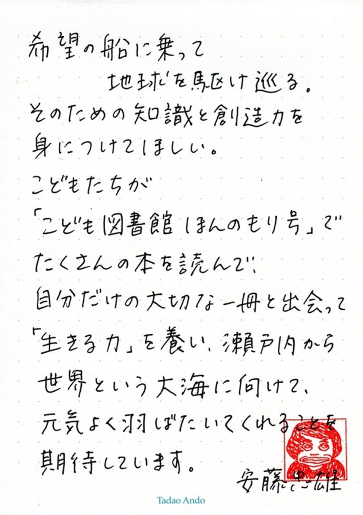 通常は小型バスを使う「移動式図書館」を船のリノベーションでつくって、瀬戸内の島々を回るという。安藤氏が工事費を出すとはいえ、そんな夢物語みたいなアイデアを持ち掛けたら、やれ受け入れる港はどうするだの、運航の費用は誰がどう集めるだの、いろいろな方面から反対の声が上がることは想像に難くない。