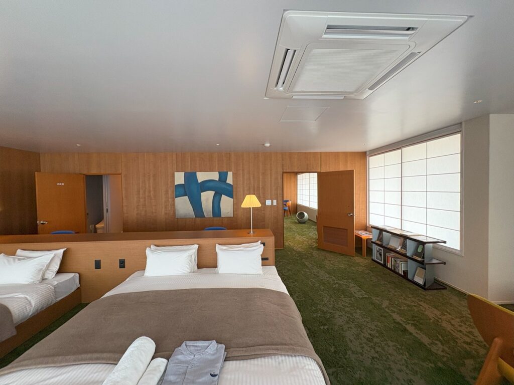 さらに、坂倉建築のシャープなラインやコンクリートの質感に対し、人の手が生み出すアート作品が持つ「肌触り」や「感情」が、空間に新たな対話をもたらすと信じ、各客室にアートを迎え入れました。アート作品は、建築が持つ静謐なムードを壊すことなく、そこに親密な温かみを加え、滞在する人それぞれの感性に語りかける存在となるでしょう。それは、空間を単なる「箱」ではなく、訪れるたびに新たな発見のある、生きたギャラリーへと昇華させます。