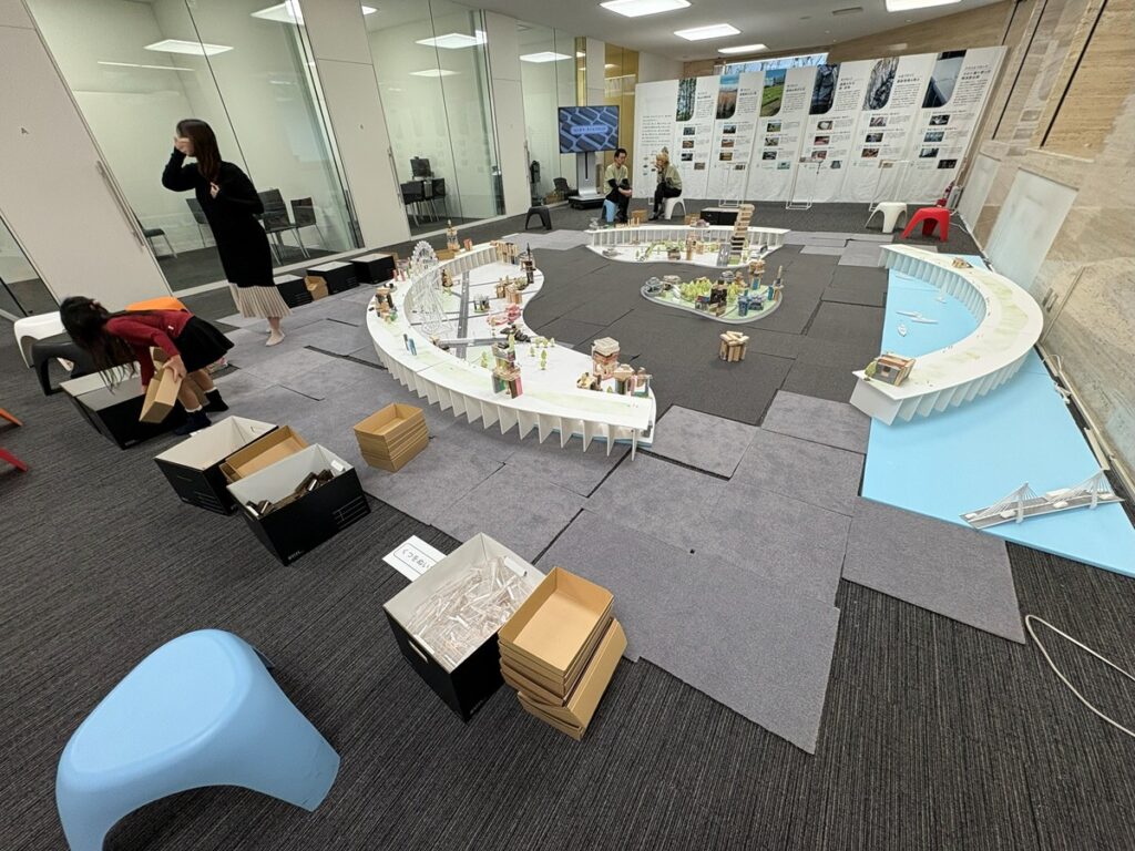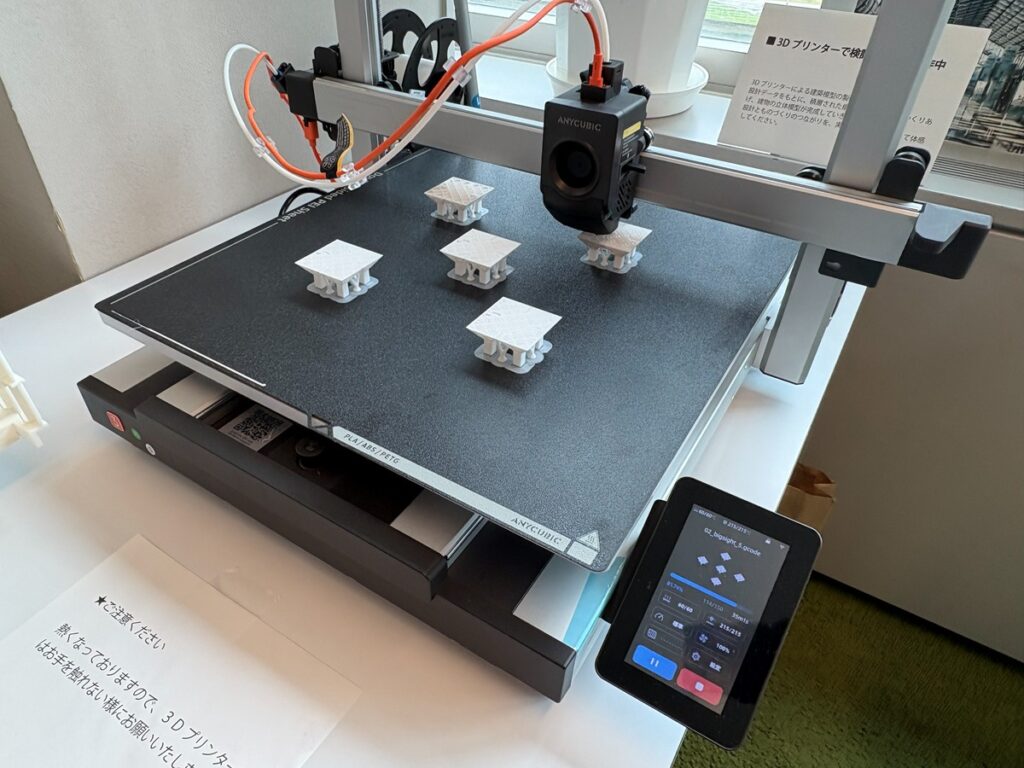 3Dプリンターで小さな建築模型をつくる過程を見せたり…。