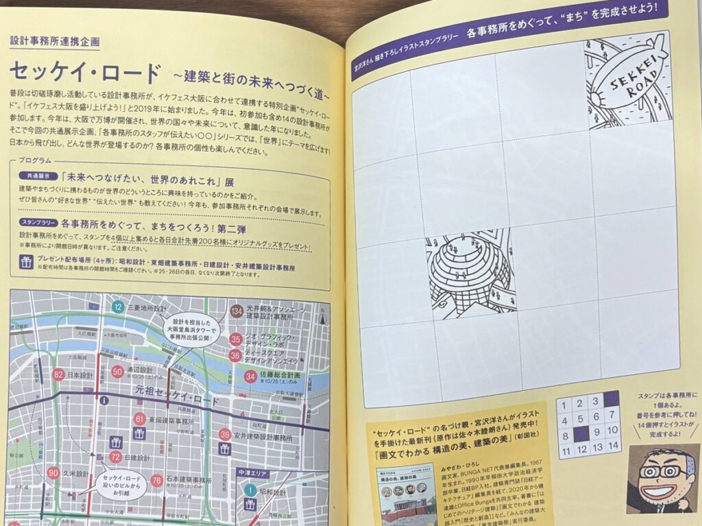 「イケフェス大阪(生きた建築ミュージアム フェスティバル大阪)2025」の初日(10月25日)に参加してきた。メインの目的は、筆者(宮沢)が命名者である「セッケイ・ロード」。7回目となる2025年は、昨年から2社増えて14社が参加。毎年イラストを描いているスタンプラリーは、14社集めると1枚の絵になる。各事務所へのご挨拶を兼ねて14社を1日で回ってみた。計算上は、移動時間も含めて1時間あたり2社。本当に全社回れるのか?