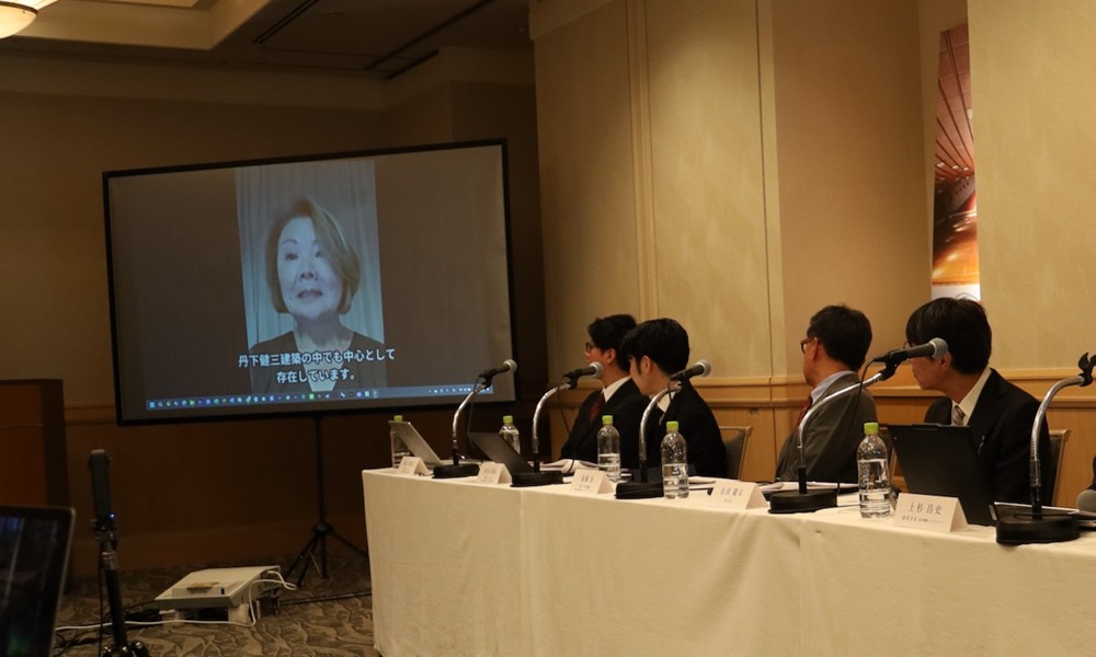ここで建築価値の再認識について、改めて触れられた。DOCOMOMO Japan、国立代々木競技場世界遺産登録推進協議会、日本建築学会、ニューヨーク近代美術館などから、保存・再生を求める嘆願書、要望書が出されていることをまず説明。そして、2人のビデオメッセージが流れた。
