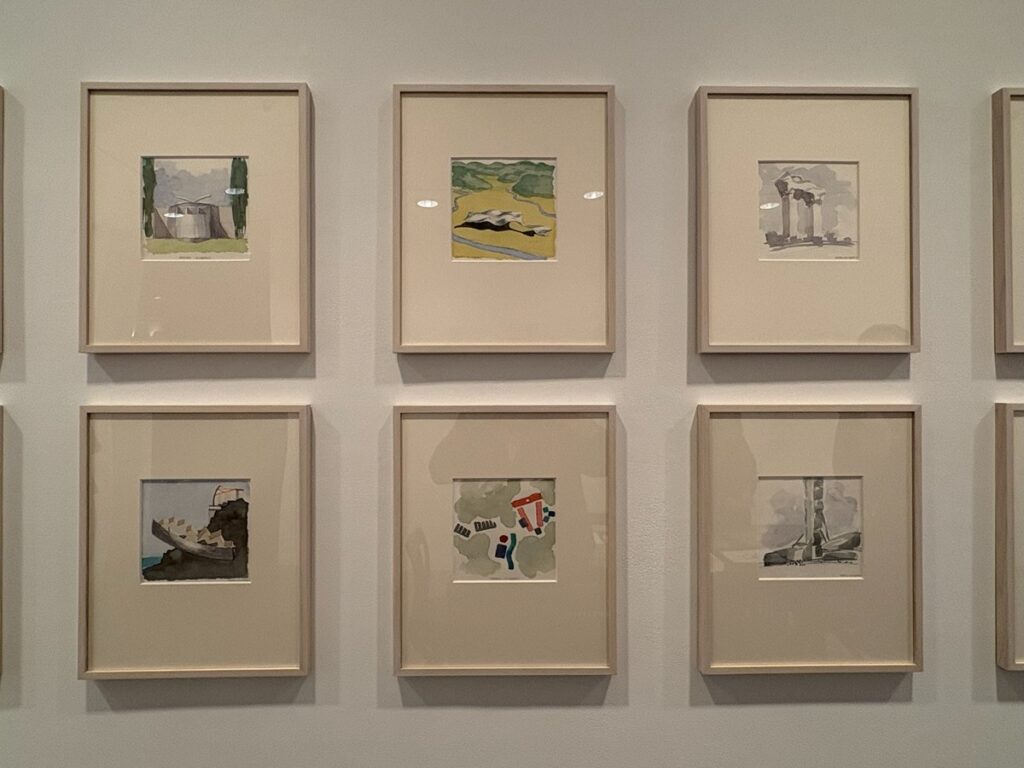 水彩も見事。これらを見て、磯崎のシルクスクリーンの版画シリーズは本当に本人ディレクションなのだということがわかった。