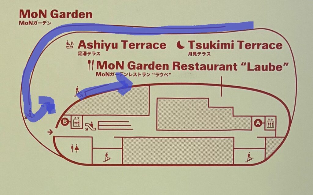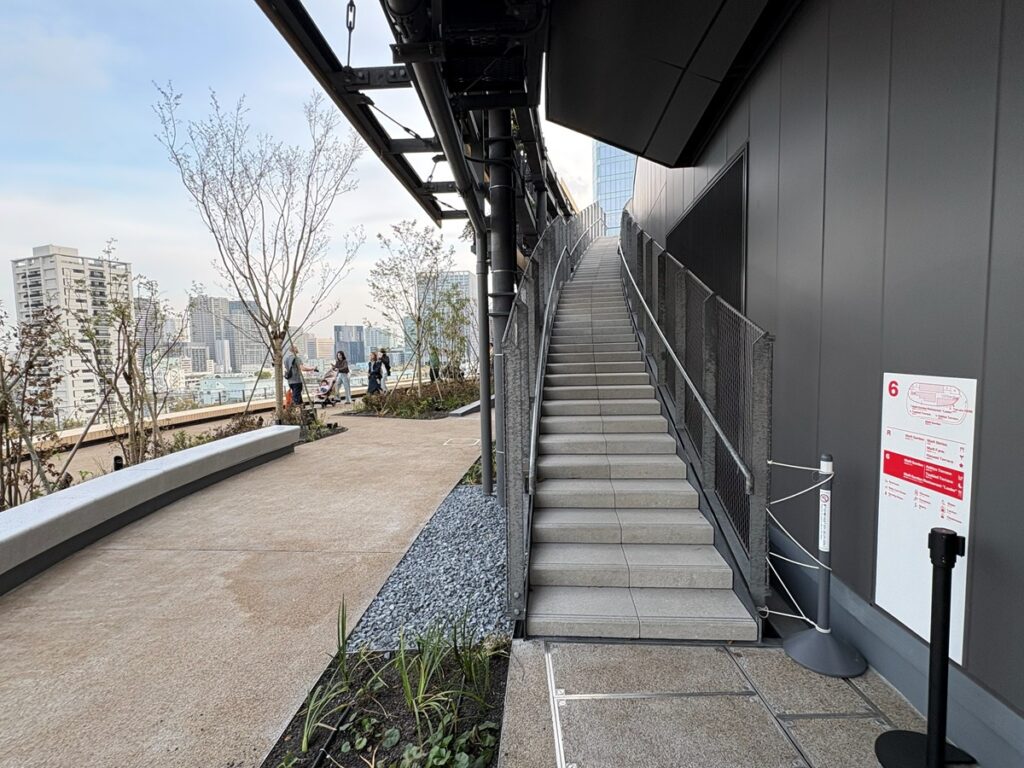 わかりやすくするために、最初は「できるだけ外を通る」ルートで屋上に上り、下りは室内をめぐって下りてみる。