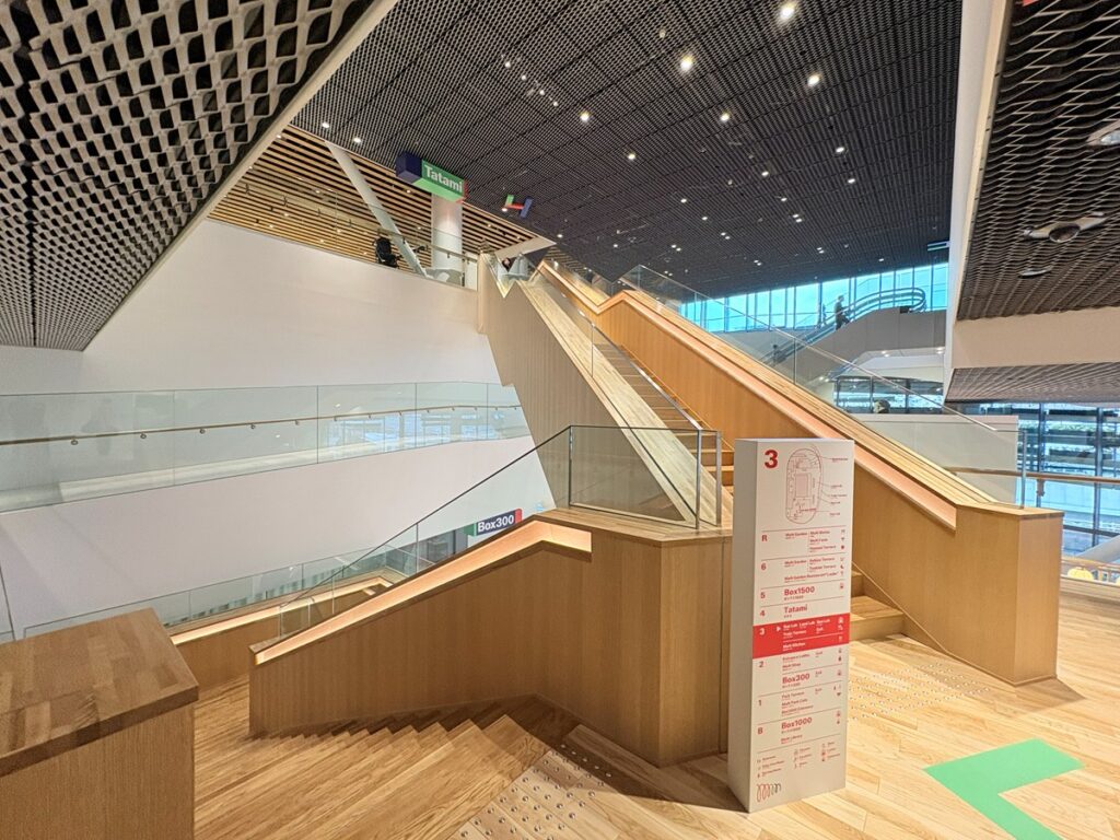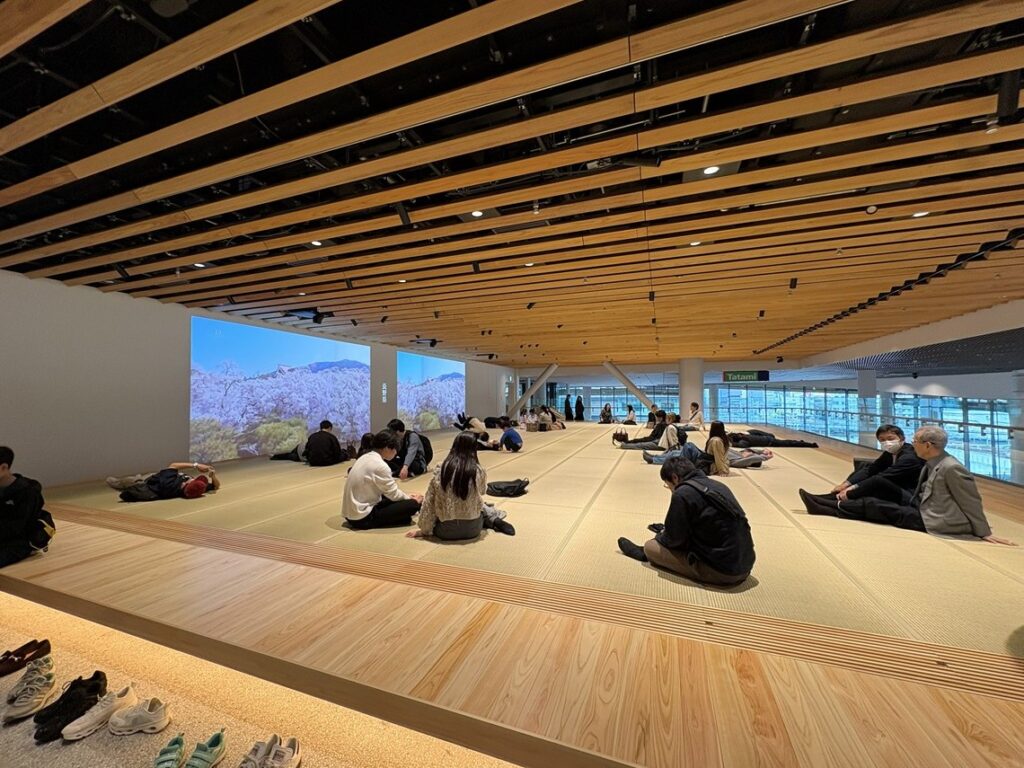 館内には、約1,500㎡の展示空間、ステージ全面にLEDを備えたシアター空間、約100畳の畳空間などを有し、展示からパフォーマンス、体験まで幅広い表現に対応します。さらに、足湯テラスや月見テラス、神社、ファームなど、誰でも利用できる滞在空間やレストラン、カフェなども併設し、一日を通して文化に触れながら滞在できる構成としています。
