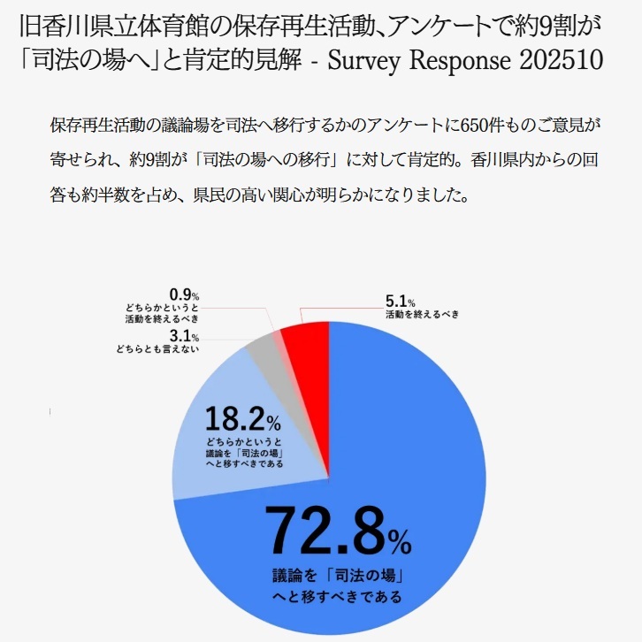 11月に入った。今月中には旧香川県立体育館の解体入札の結果について何らかの動きがあるとみられている。現時点では合田工務店が約8.5億円で落札し、県議会の議決を待つ状態。県議会の定例会は年4回で、おおむね2月、6月、9月、11月に開会される。大きな波を控えたいま、旧香川県立体育館再生委員会代表、長田慶太氏のインタビューを掲載する。前編からの続きだ。(聞き手は宮沢洋)