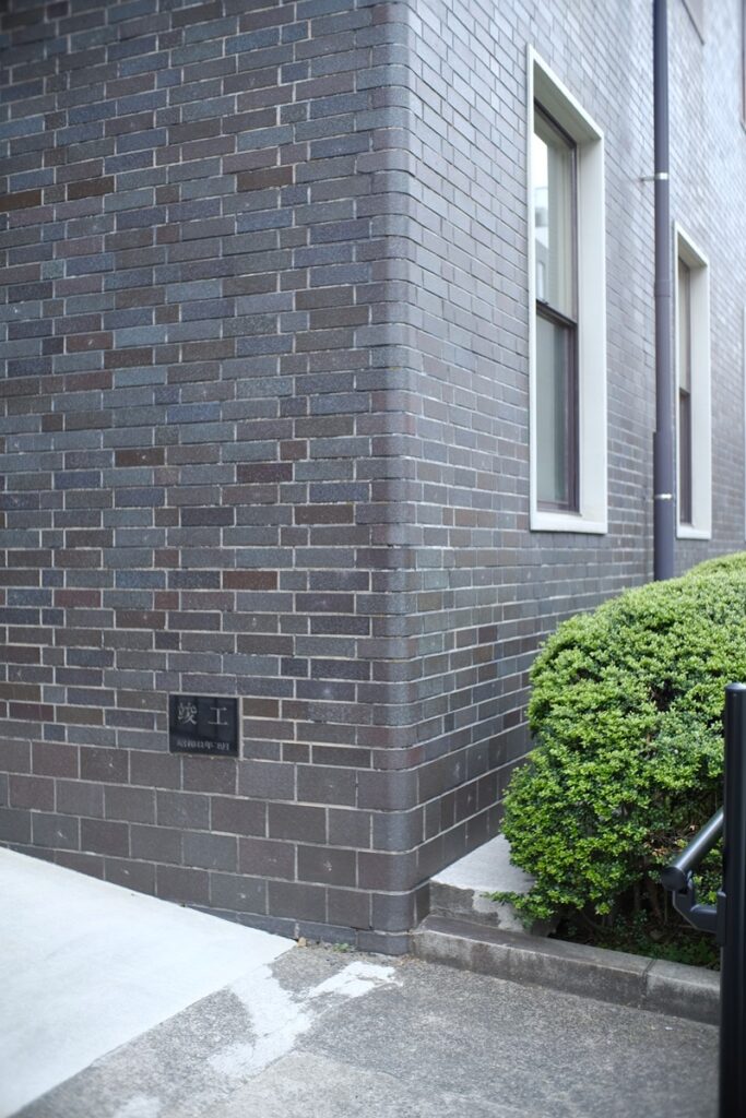 建物の角部分はアールの加工が施され、あらかじめ曲げた形で焼く曲面タイルで丁寧に納められている。新潮社の外壁タイルがもつ個としてのかわいらしさと、それらが集合したときの装飾性。個から群へスケールの接続を可能にする各ディティールへの配慮。そこに、道ゆく人を含む建物に関わる人々の愛が宿る。