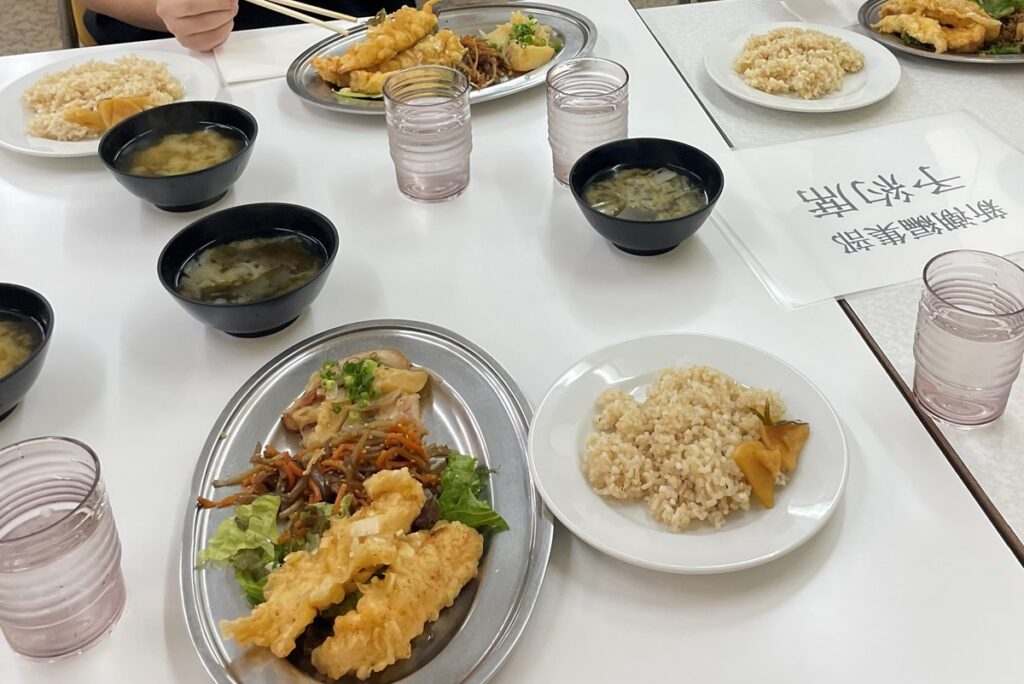 倉庫内を見学した後は、本館地下の食堂での社食体験。鶏天、ジャーマンポテト、きんぴら、大根漬、白米(もしくは玄米)、みそ汁というバリエーション豊富なプレートが200円というのだから目を疑ったが、間違いではなかった。とてもおいしかった。