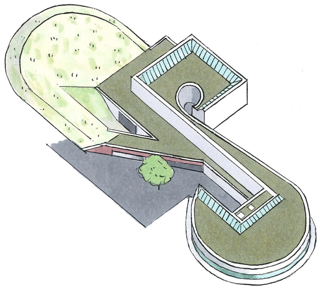 この施設を見て筆者が強く感じたのは、巧みな高低差だ。美術館としてさほど大きなものではないし、展示室がいくつもあるわけでもない。それでも、高低差を含む動線の設定と景色のトリミングによって、これだけ変化のある空間がつくれるのか、と感心した(平面形が知りたい方はこちら)。