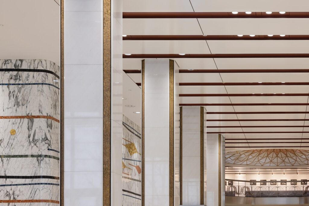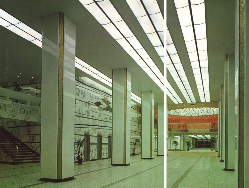 前置きが長くなったが、そろそろ肝心の「新東京ビルヂング」の空間的魅力に迫りたい。とくに、このビルは、「大手町ビルヂング」と同様に、既存ビルを生かした大規模リニューアルにより、建て替えられることなく次世代へとその意匠が継承されることとなっているので、現存する部分を取り上げながら、その特徴を見ていきたい(注8)。