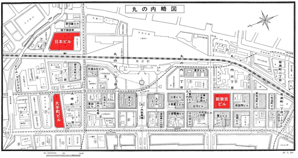 (注2) この丸の内の三大プロジェクトのうち「日本ビルヂング」はその役割を終え、1998年以降の第三次再開発により解体。跡地では現在、TOKYO TORCHプロジェクトが進行中である。一方の「大手町ビルヂング」と「新東京ビルヂング」は、丸の内の戦後オフィスビルにおける大規模リノベーションの先駆例として現存する。