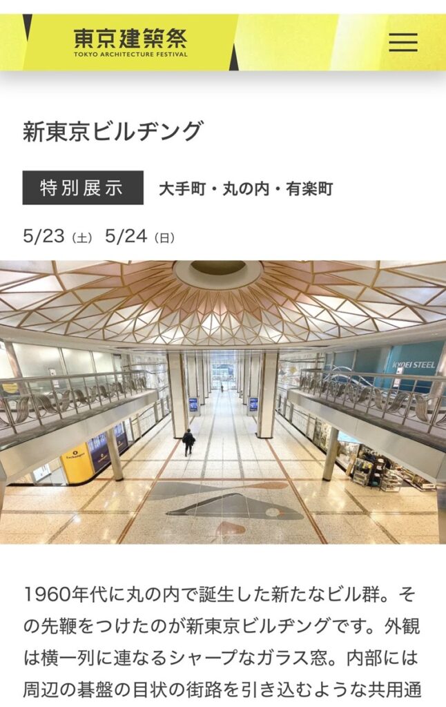 ※「東京建築祭2026」のイベントとして5/23(土)・5/24(日)の2日間、「新東京ビルヂング」での特別展示を行います。詳細はこちらを。