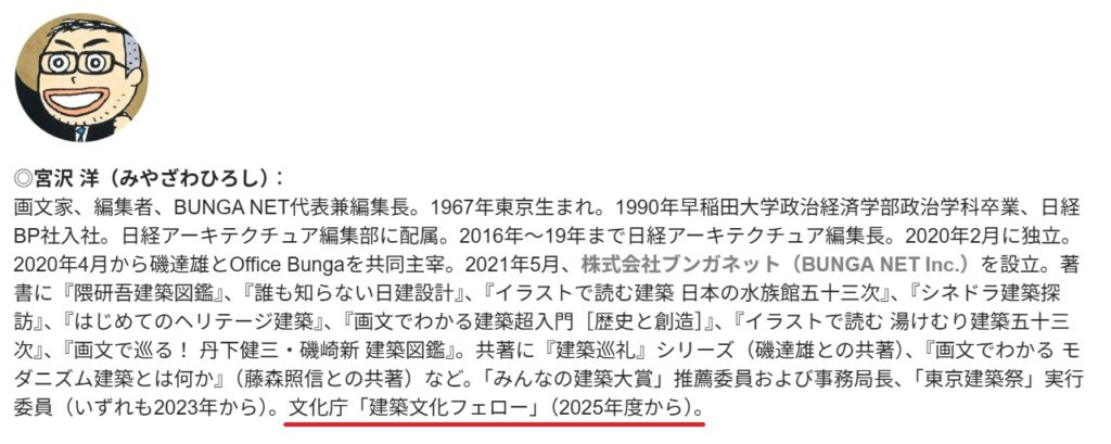 その前提は共有できそうなトークイベントだった。なので、これを機に自分のプロフィルに「建築文化フェロー」を加えることにした↓。「建築文化フェロー」としても、頑張ります!(宮沢洋)