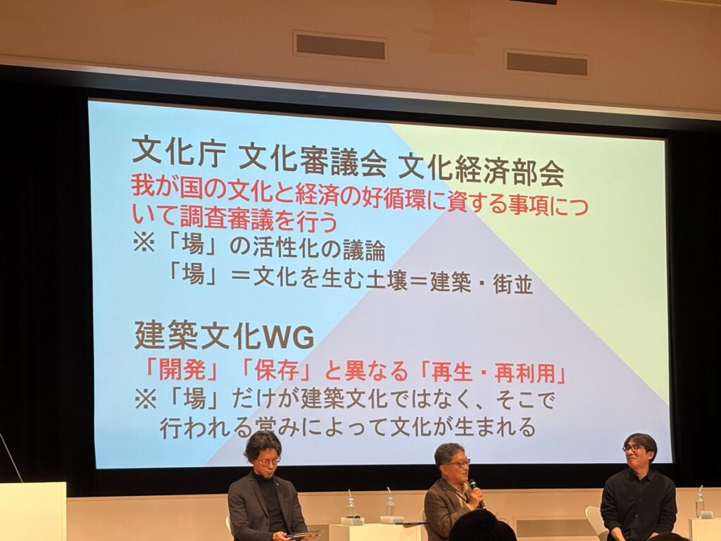 このイベントは本サイトで2023年にリポートした文化庁の検討会「建築文化に関する検討会議」の流れを汲んでいる。