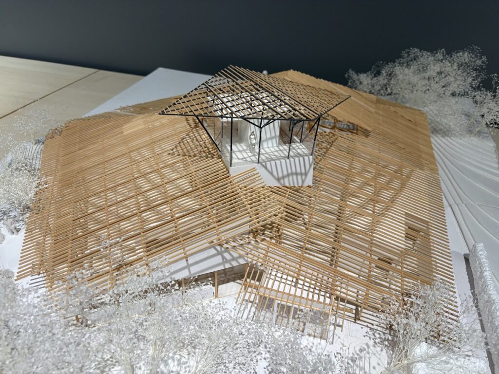 アルゲリッチハウスの模型。2023年に島根県立石見美術館で行われた「建築家・内藤廣/Built とUnbuilt 赤鬼と青鬼の果てしなき戦い」展にて。渋谷展でも展示されている