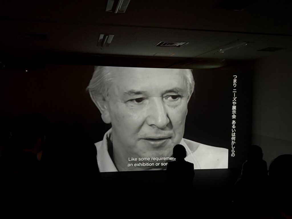 田根氏によると、「依頼があったのは1年ちょっと前。会場施工と展示で6日間。ついさっき作業が終わったところ」とのこと。「それにしては展示の完成度が高い」と褒めると、「準備の期間は短かったけれど、織田先生の頼みでは全力でやらざるを得ません」と笑っていた。