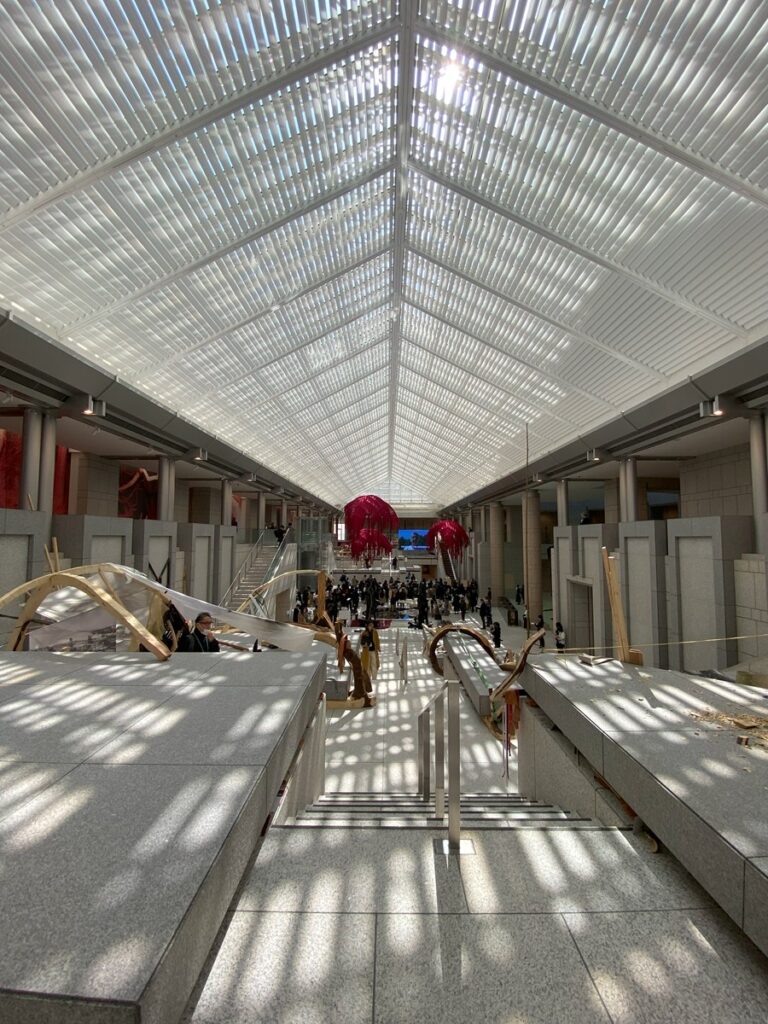 本人たちの口からは言いにくいのだろうと思うので代わりに言うと、劇的に空間が柔らかくなっている。筆者は『丹下健三・磯崎新建築図鑑』という本を書くために、工事前にも見に行った。このときとは印象が全然違う。元がフランスパンだとしたら、バゲット煮込みくらいに柔らかくなっている。