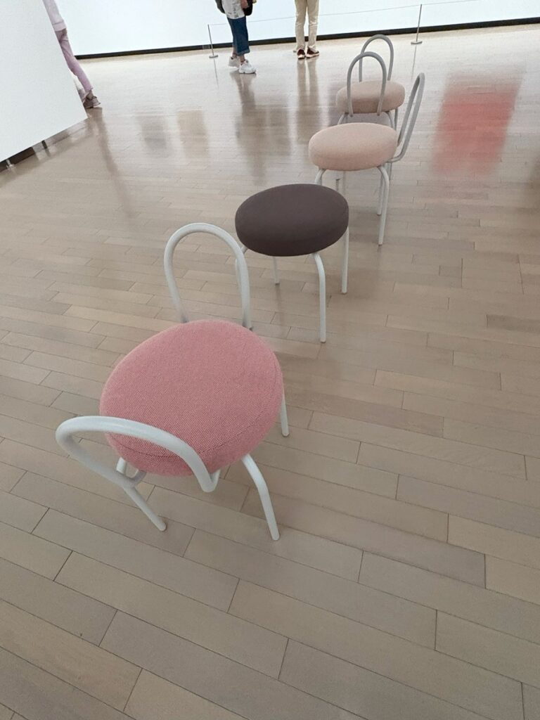 じゆうエリアも柔らかくなっているのだが、筆者がもっと驚いたのは、コレクション展の展示室内。展示室って椅子が変わるとこんなに柔らかくなるのか!