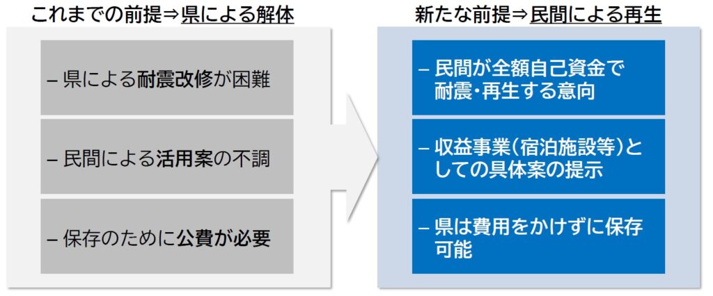 もう1つ、筆者が「やっぱりなあ」と思ったのは、「民間の利活用調査のときにもう少し議論が盛り上がっていればという気持ちはある」という部分だ。そう、今回の再生委員会の提案が4年前、2021年秋に県が行った「サウンディング型市場調査」のときに出ていれば、即採用だったのはないかと思うのである。